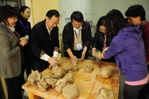 检查组成员还查阅了公司提供的支撑材料,并参观了“虚实斋”陶吧并兴致勃勃地感受陶艺文化。