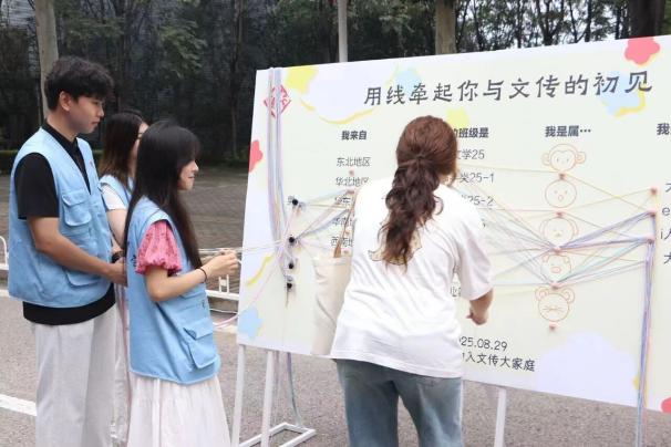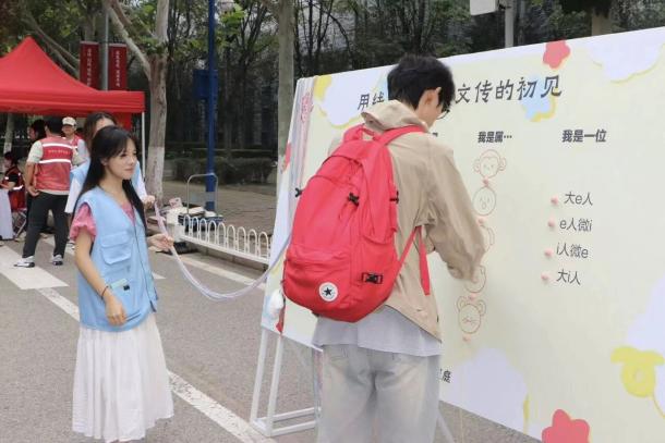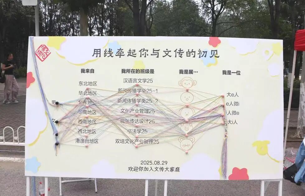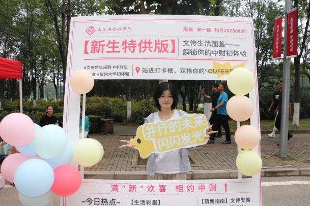 公司以“联结”为主题设计迎新方案。定制卡套图案精选图书馆、体育场、食堂、老员工活动中心四处校园标志性建筑,以“四时光影”为设计理念,融合校园日常与浮雕光影之美,实用又具纪念意义;文传日报仿古报纸制作,拍照框内新生打卡留念,定格初遇中财大的笑颜;还有“用线牵起你与文传的初见”签到互动点,新生亲手牵起自己的专属线条。牵线既是个性标识,更象征与公司的情感联结,赋予“与文传相遇”的独特仪式感。