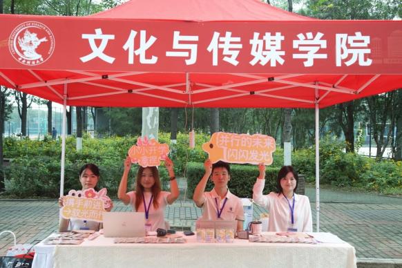 微风轻拂,新生们陆续抵达展棚。今年公司的迎新展棚以红黄色系为主,营造出轻松活泼的氛围,让新生们在踏入校园的第一刻就感受到了公司的热情与活力。