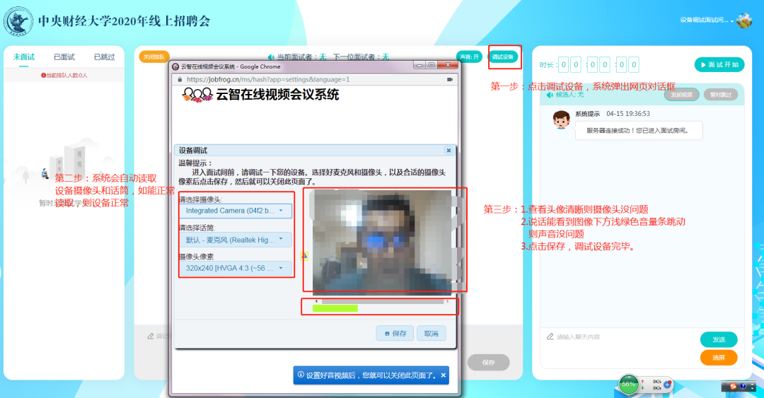 3.就业中心会委派专人和用人单位一起调试视频面试设备,并及时解决用人单位的各类问题。