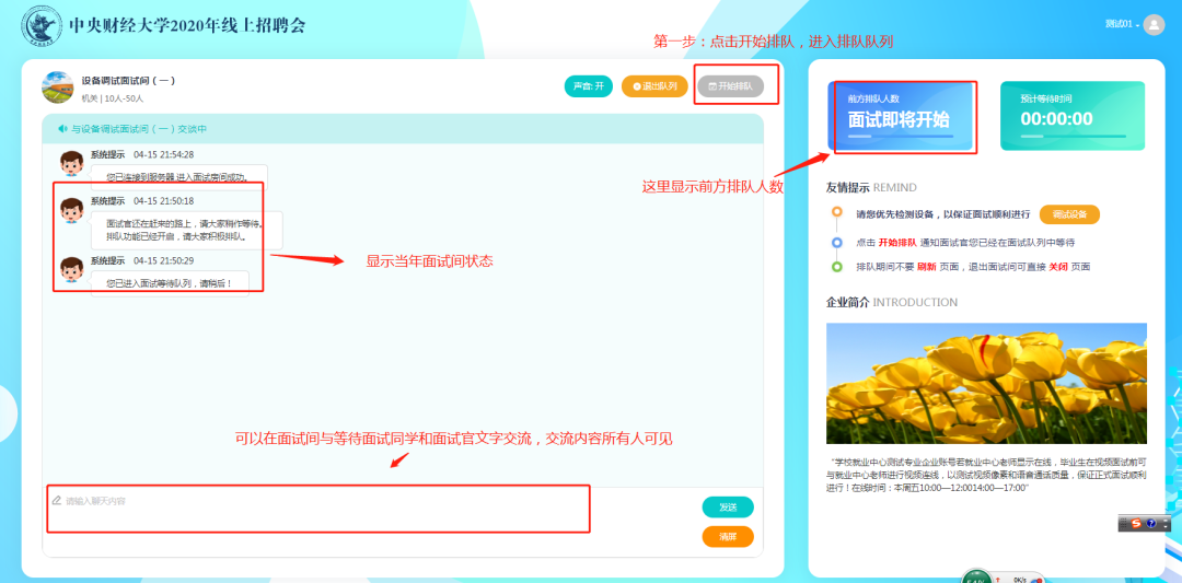 (2)查看面试具体时间和要求,并按指定时间进入面试间面试