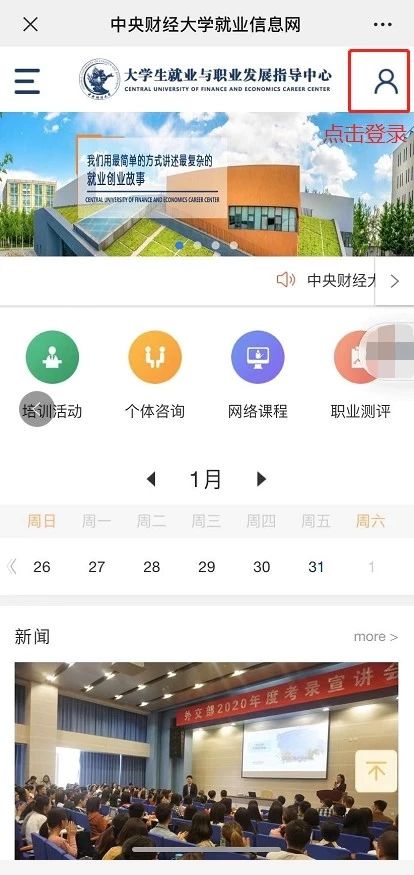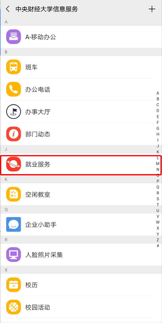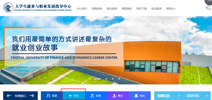 紧接着菜单中点击“就业服务”登陆“中财就业微主页”