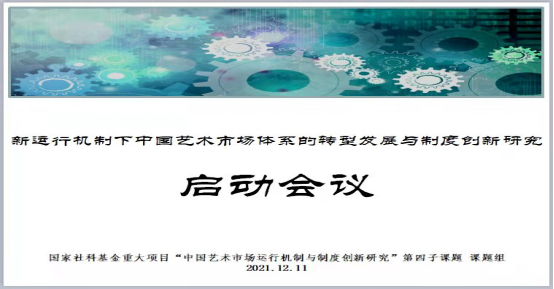 公司刘双舟教授主持的国家社科基金艺术学重大项目“中国艺术市场运行机制与制度创新研究”开题以来顺利推进。2021年12月11日,该重大项目的第四子课题组召开启动会议,研究工作正式启动。