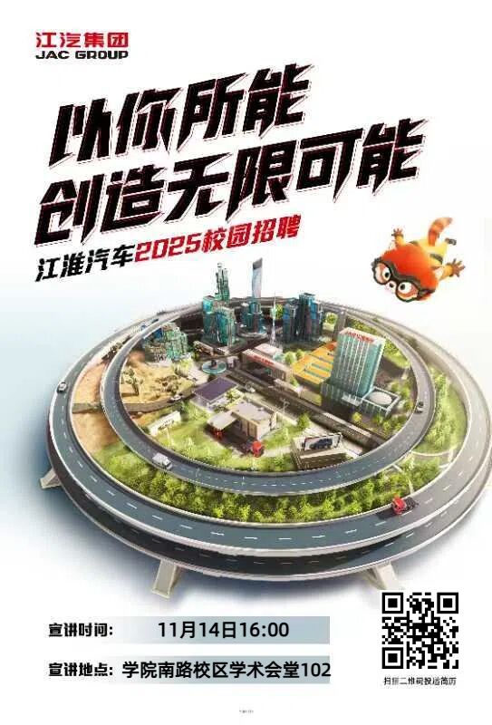 【江淮汽车】2025校园招聘【304永利集团专场宣讲会】邀请您参与!
