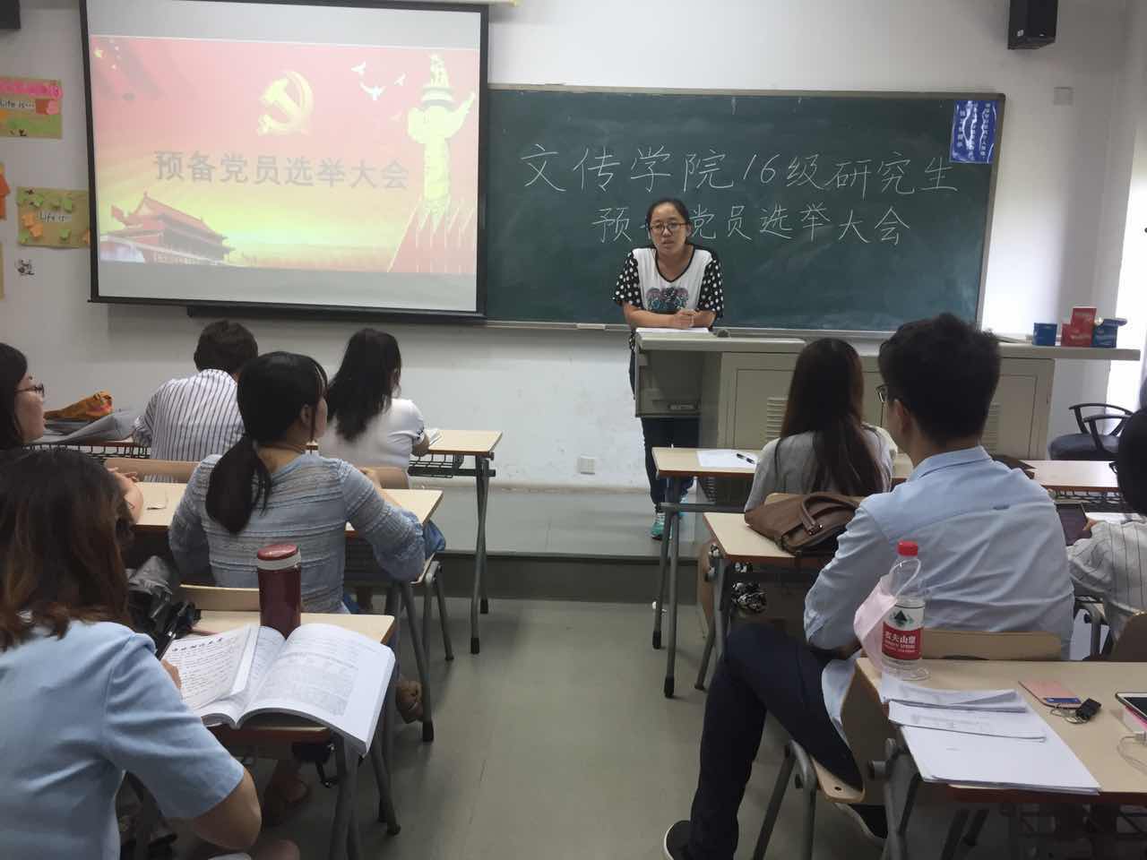 2017年5月9日中午12:30,304永利集团16级研究生党支部在公司三号楼217室召开“文传公司16级研究生预备党员选举大会”。大会由党支部书记胡悦老师主持,参会人员有研究生辅导员史忠媛老师,全部党员、积极分子和团员参加。