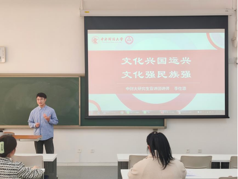在习近平文化思想专题党课学习活动中,由校研究生宣讲团讲师、马克思主义公司2023级马克思主义理论硕士李仕源以《文化兴国运兴 文化强民族强》为题展开宣讲。文化关乎国本、国运,在新的起点上继续推动文化繁荣、建设文化强国、建设中华民族现代文明,是我们在新时代新的文化使命。他分别从“薪火相传民族根脉”“狮醒东方奋发图强”“复兴征程强国有我”“继往开来时代新篇”四个部分展开讲述,指出对历史最好的继承就是创造新的历史,对人类文明最大的礼敬就是创造人类文明新形态。当代青年应担当使命、奋发有为,共同努力创造属于我们这个时代的新文化,建设中华民族现代文明!