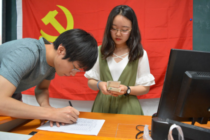 在宣誓过程中,预备党员面对党旗进行入党宣誓,这不仅是党组织对其入党后进行的一次庄严而生动的党性观念教育,也是预备党员进行自我教育的良好形式。在庄重入党宣誓结束后,支部成员们一起唱响了国际歌。流程结束后,党支部就用于北京市范围内的救助活动进行自愿捐款。