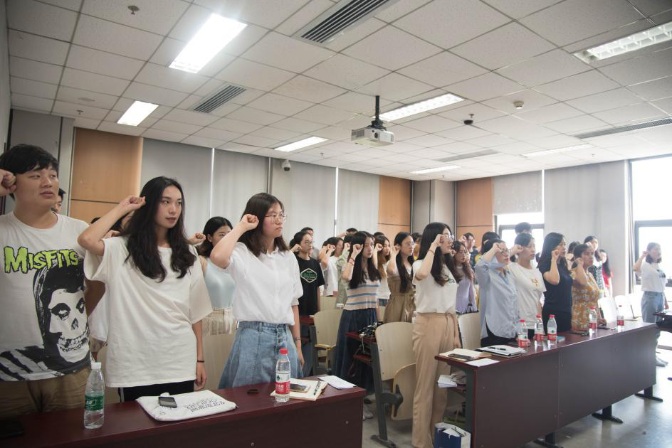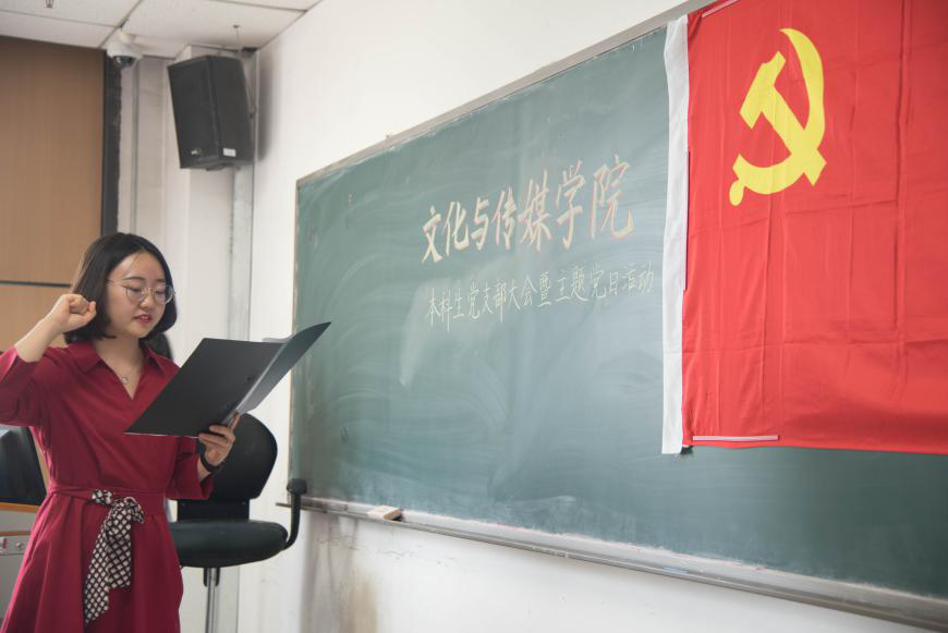组织委员马紫涵带领大家面向党旗宣誓
