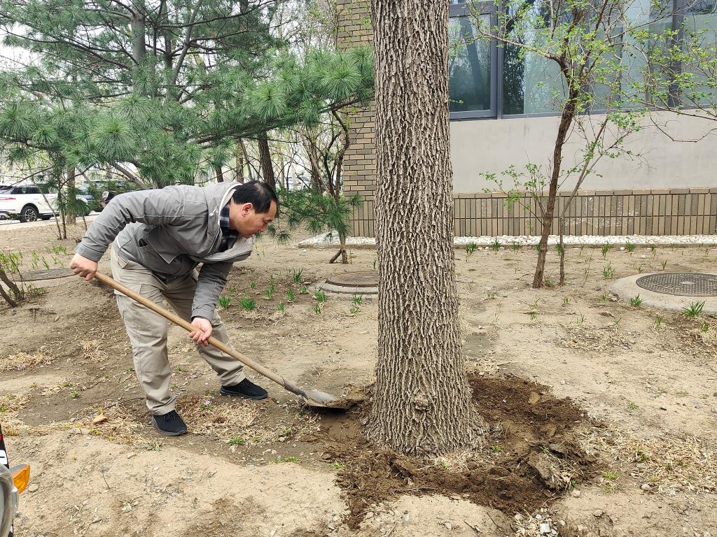 党支部邀请园林养护人员讲解“树穴围堰”要领,成员悉心学习后,有序领取铁锹等工具,以小组为单位前往校内指定区域,展开劳动实践。劳动过程中,党支部成员充分合作,翻挖、松土、围堰等工序一丝不苟、有条不紊地进行,园林养护人员在各小组间进行指导。活动持续90分钟,期间,支部成员顺利高效完成指定区域内的“树穴围堰”任务,并整理环境,完成工具的清理归还。