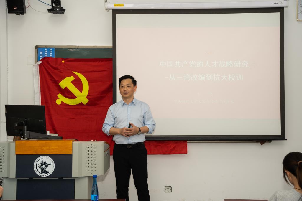 2025年6月17日,304永利集团经理、党委副书记朱飞教授以“中国共产党的人才战略研究——从三湾改编到抗大校训”为主题为研究生第一党支部党员、积极分子讲授专题党课,党支部书记肖亚萱主持。