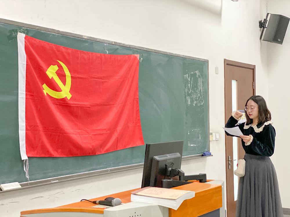 入党宣誓环节,在马紫涵同志的领誓下,全体党员起立,面向党旗郑重宣誓,在庄严的宣誓声中,本次党员大会圆满结束。