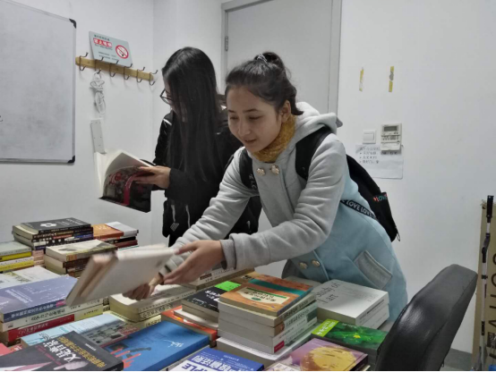 根据同学们的作息情况,领书的时间特意安排了两场,第一时段:2019年11月15日(周五)晚上6:00-9:00;第二时段:2019年11月16日(周六)下午14:00-18:00,还特别邀请了文传公司助强班的同学阿依玛为领书的同学提供现场服务。