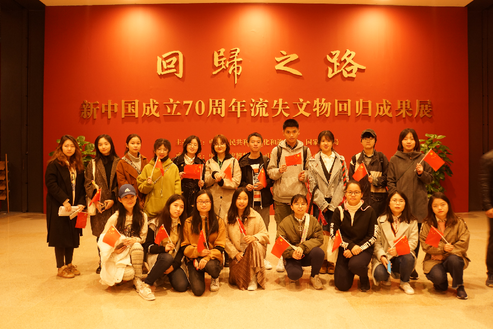 最后,同学们来到了“回归之路——新中国成立70周年流失文物回归成果展”。圆明园十二生肖兽首,皿方罍器,《五牛图》,《潇湘图》……中华民族从屈辱危亡走向伟大复兴的历史脚步,成就了流失文物从颠沛散失到盛世重光的命运变迁。70年来,各级政府坚定决心,亿万中华守护民族根脉。流失文物从昔往今归,见证的是中华民族从站起来、富起来走向强起来的伟大历程。
