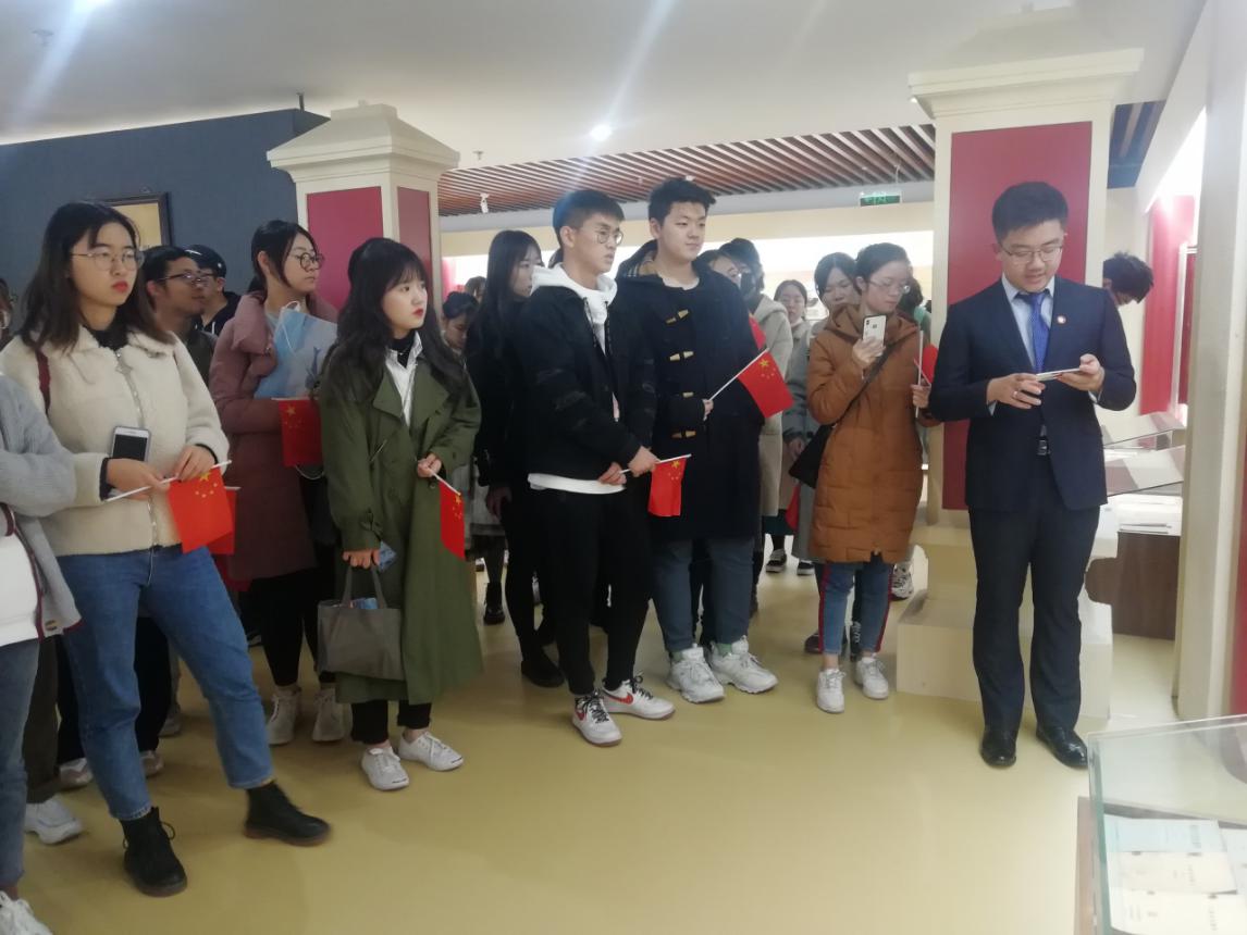 两位引导员为同学们讲解了公司七十年发展历程。迈过我国第一个历史时期中央税务公司的仿真大门,便进入到了公司的办学时代,从中央税务公司到中央财政公司,中央财经公司,再到中央财政干部公司……不变的“中央”两字意味着公司为共产党提供财经人才的初心不变,为社会主义改造经济建设贡献力量的初衷不变。