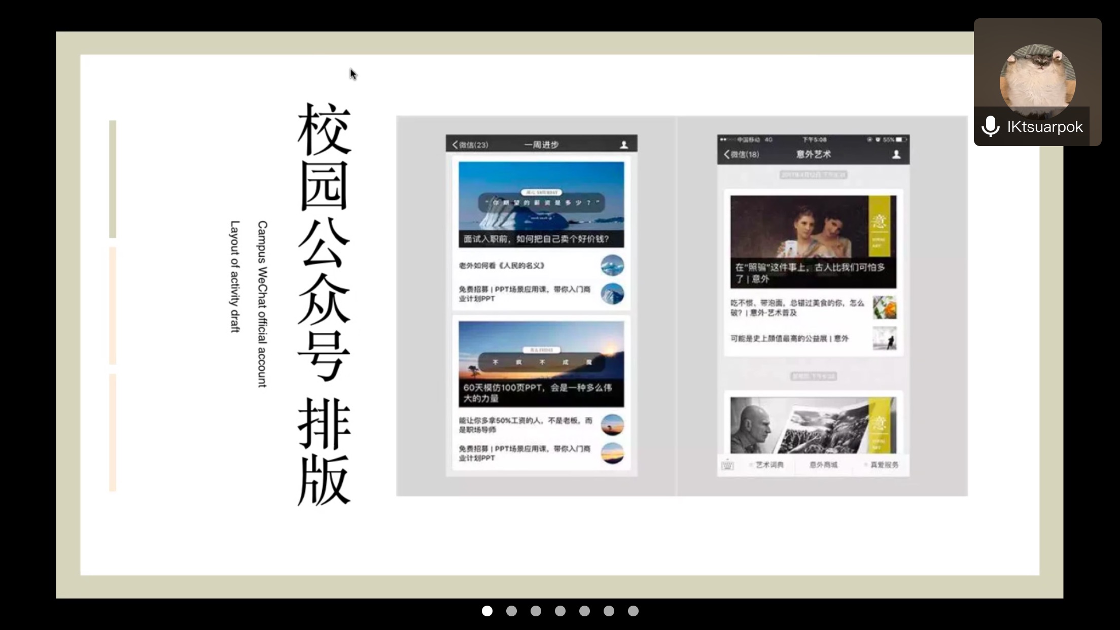 首先韩永琦指出了排版的意义在于方便阅读,将文章梳理得更具条理性和可读性是排版的真正作用。而后韩永琦从公众号中对话类布局、底色使用、板块分割等方面出现的问题进行了一一说明,实例的加入让同学们更加直观地理解到模版的正确使用方法。