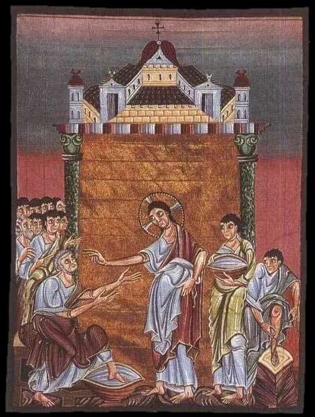 基督为使徒洗足,约1000年,奥托三世《福音书》插图,Munich