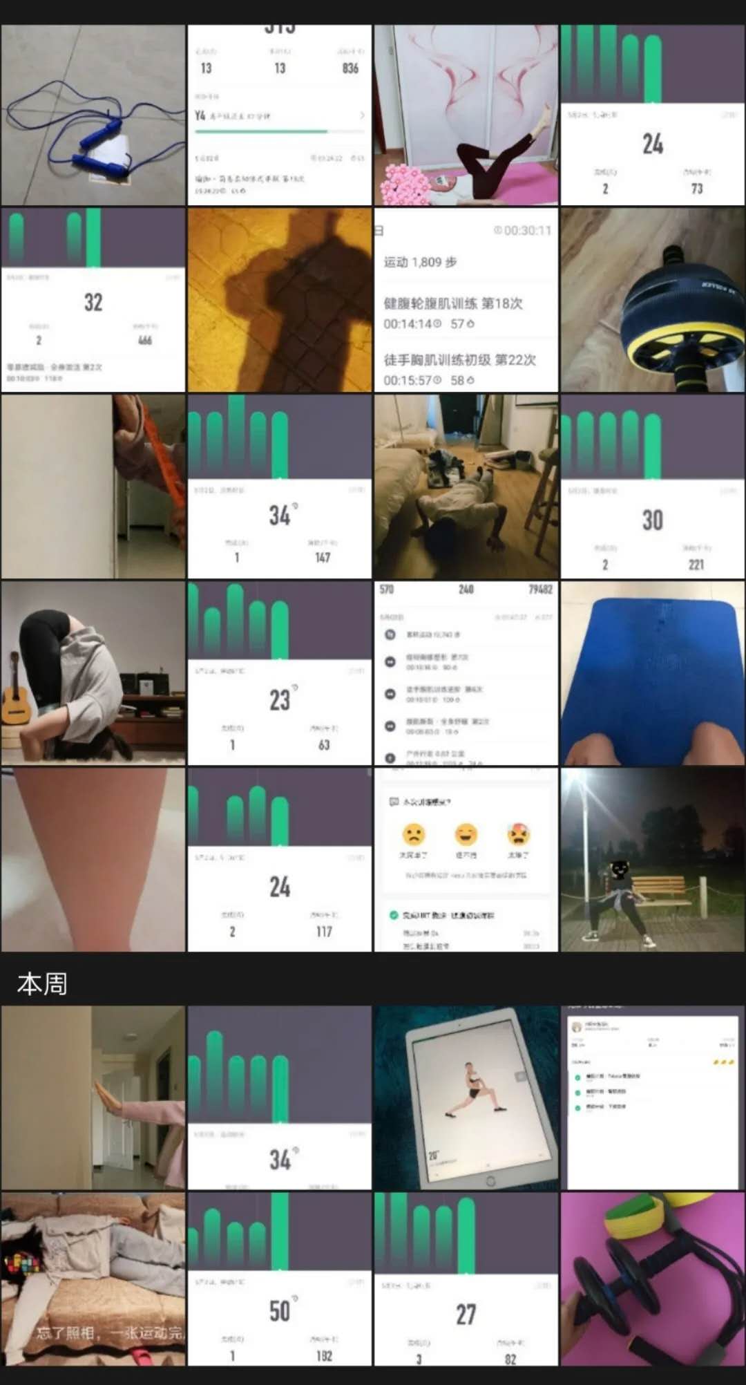 同学们的日常打卡涵盖了多种多样的运动项目,瑜伽、HIIT、长跑、单车……每一位同学都选择了适合自己的方式,向着活动之初设立的目标一步步靠近。