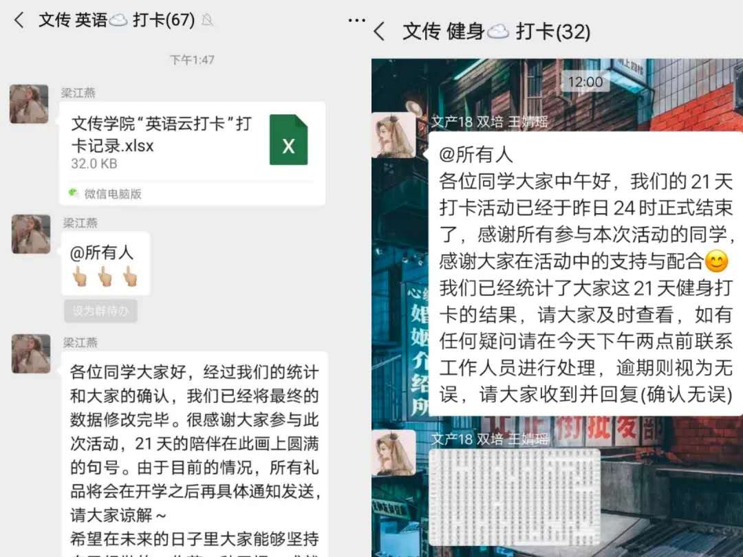 21天,在我们的人生旅途中不过是沧海一粟,转瞬即逝,但相信这21天的打卡足够使我们养成一个小小的习惯。“靡不有初,鲜克有终”,不管是健身、学英语,还是做一些自己喜欢的事情,都是开头容易坚持难。虽然本次为期21天的“‘疫’起变好,今天你打卡了吗”活动结束了,但这并不意味着我们可以放松对自己的约束。在今后的生活中,希望同学们继续坚持锻炼,坚持学习,让我们在疫情期间,勤修不辍,一起成为更好的自己!