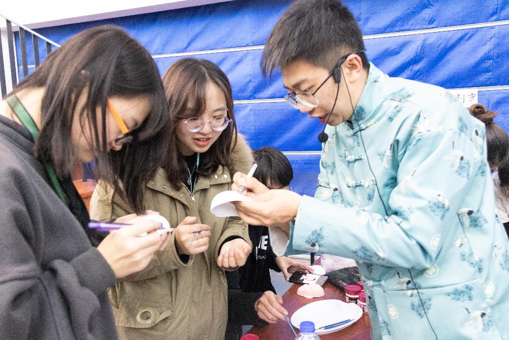 秋风凌冽,三大炮糕点制作处的糯米清香让人心头一暖,引来不少同学驻足。同学们纷纷带上手套,跃跃欲试。铺好糯米,包上红豆沙,撒上黄豆粉,软糯米香和豆沙清甜交融,与众不同的蜀地风味引得同学们阵阵叫好。