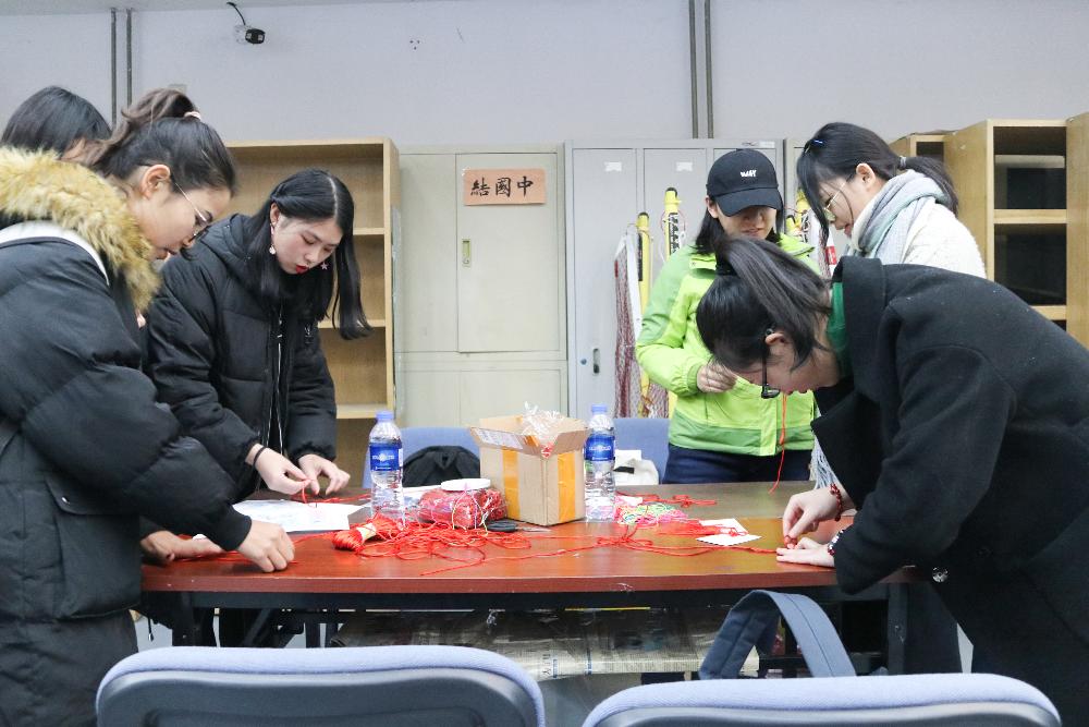 参与的同学越来越多,中国结处也渐渐忙碌了起来。中国结是中华民族团结的象征之一。在工作人员的指导下,丝丝红绳飞舞,一个个精致小巧的中国结在同学们的手中诞生。