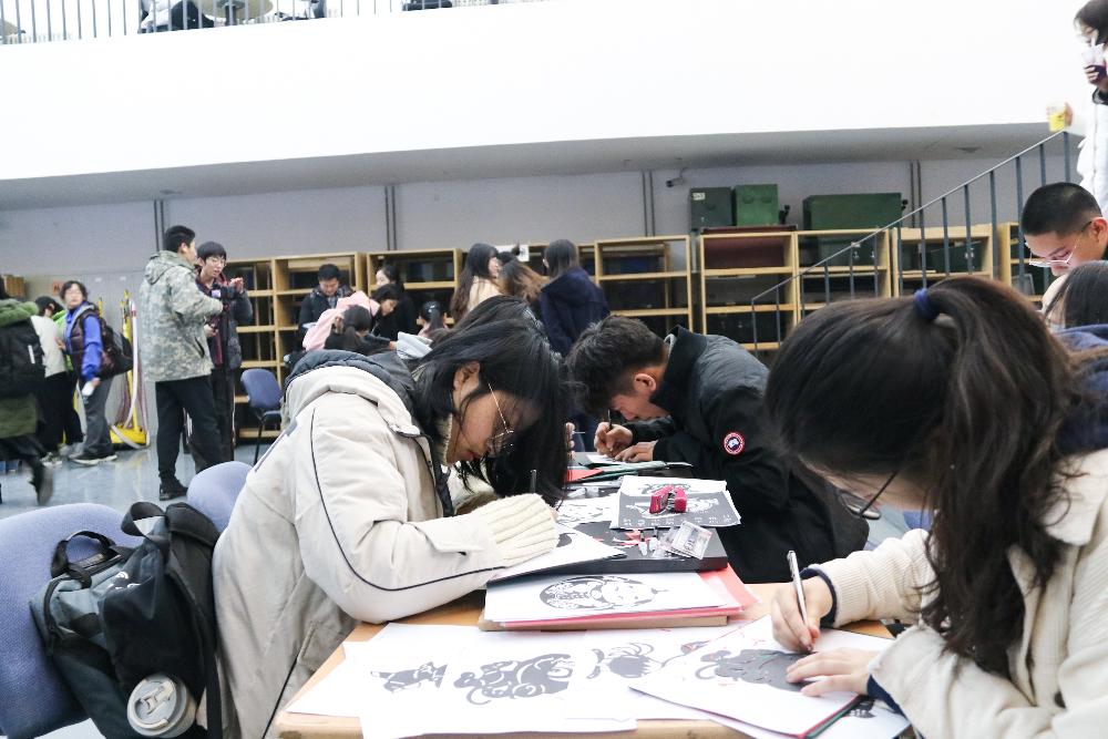 “镂金作胜传荆俗,剪彩为人起晋风。”剪纸作为中华民族最具民族特色的手工艺之一,以其鲜艳明亮的大红色和新颖别致的篆刻方式吸引了不少同学的参与。一笔笔刻出民族的特色,一点一滴流露出民族温情。