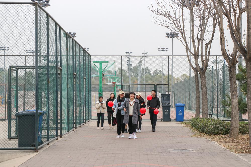 随后,各小组携带队旗与“盛世华诞”红气球便拔腿奔向活动地点。