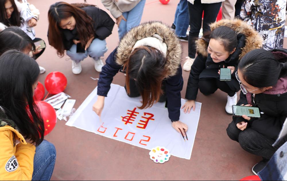 首先,同学们开展了趣意盎然的制旗活动。且看颜料在同学们的手中尽情挥洒,是饱含真情的“70周年盛世华诞”“CUFE”字样,是以纪念大戏节的精彩表演的无线电波,是一个透露着满腔热情的“嘻嘻嘻”表情包。同学们天马行空,大胆想象与创新,其秀丽的字体也为组旗增添了绚丽的一笔,妙笔生花。