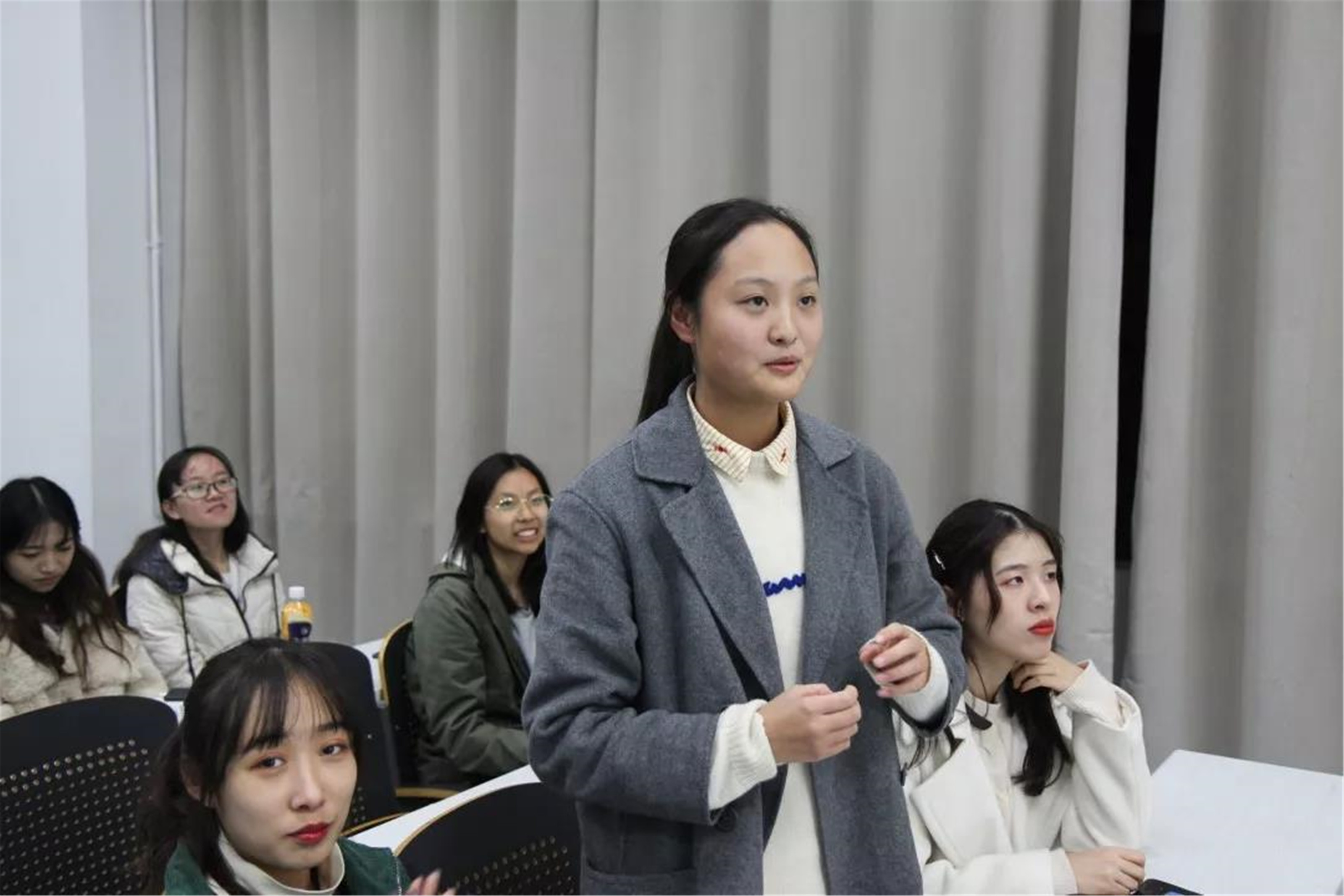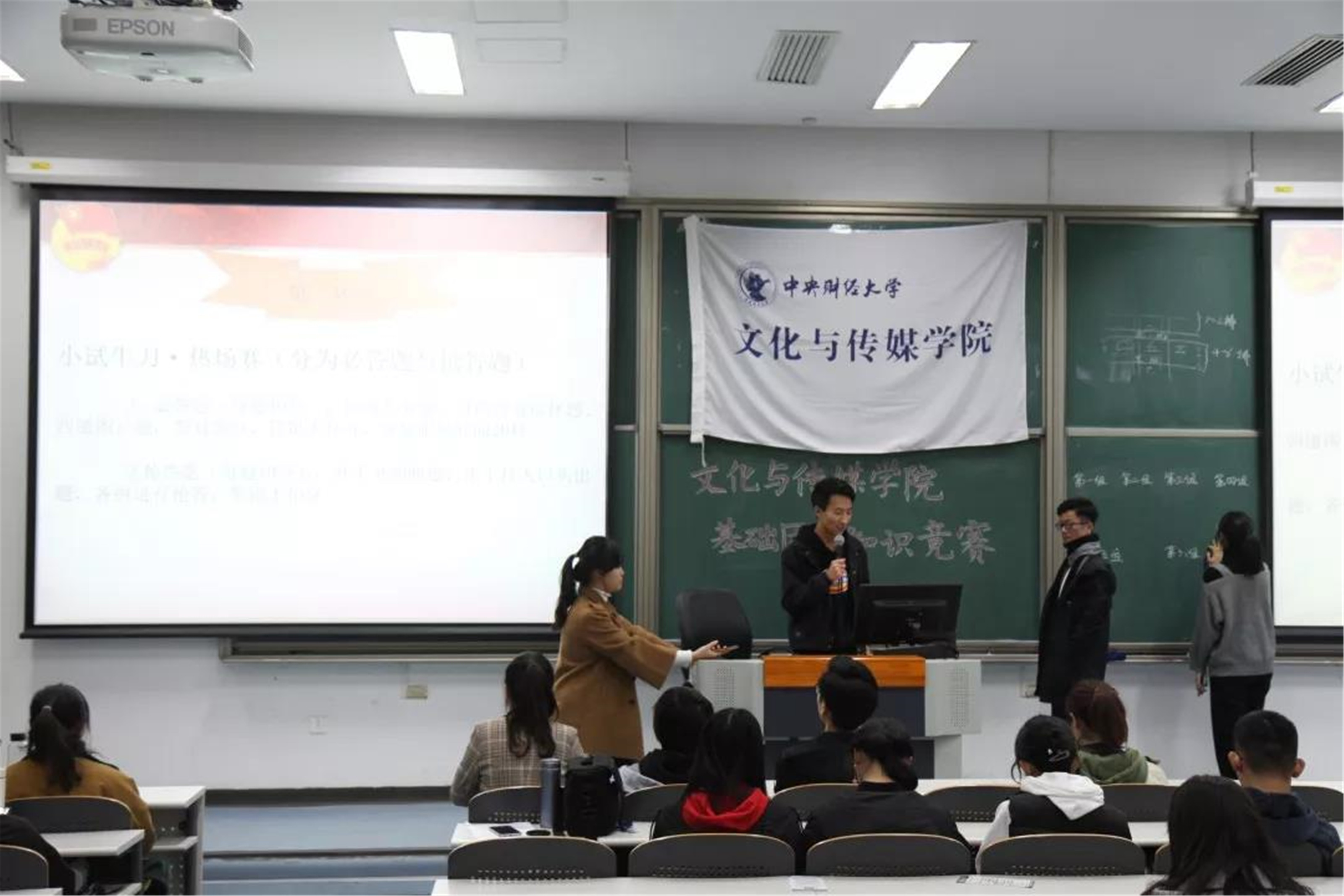 第二环节是“出其不意”,每个小组可以选择另一小组展开两个小组之间的不间断抢答,时间为60秒,但是这个环节的是答对加十分答错扣十分。面对各种刁钻难题和紧迫时间的压力,同学们依旧思维活跃,反应迅速,热情不减。在越来越激烈的抢答环节中,活动教室内气氛也越来越活跃,小组团队凝聚力得到了增强。