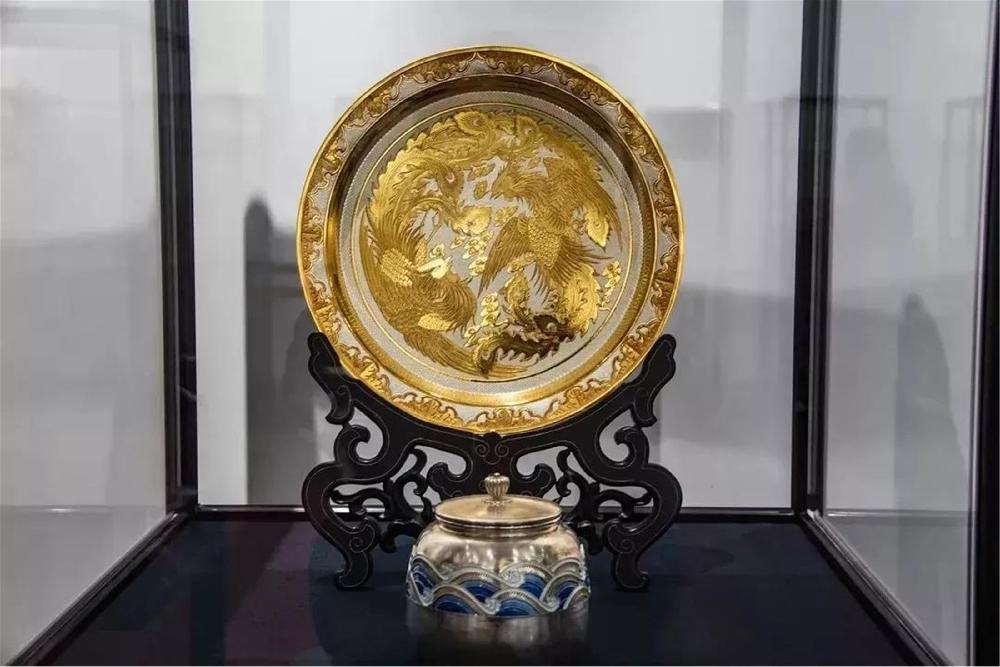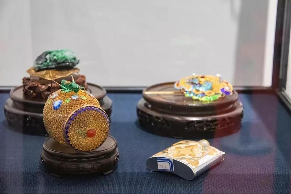 展馆中陈列着各式各样典雅大方,富丽堂皇的花丝镶嵌工艺品,学员们一路观赏,一路惊叹,惊叹于一件件精美的作品,更感叹于工匠们在这背后付出的一点一滴,心生敬佩:大抵只有执着坚守的细水长流才能换来这一件件做工精细的作品吧!