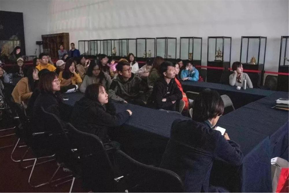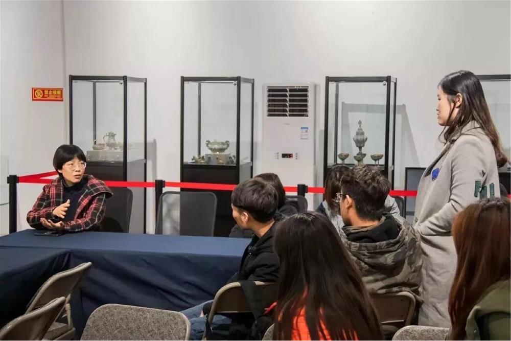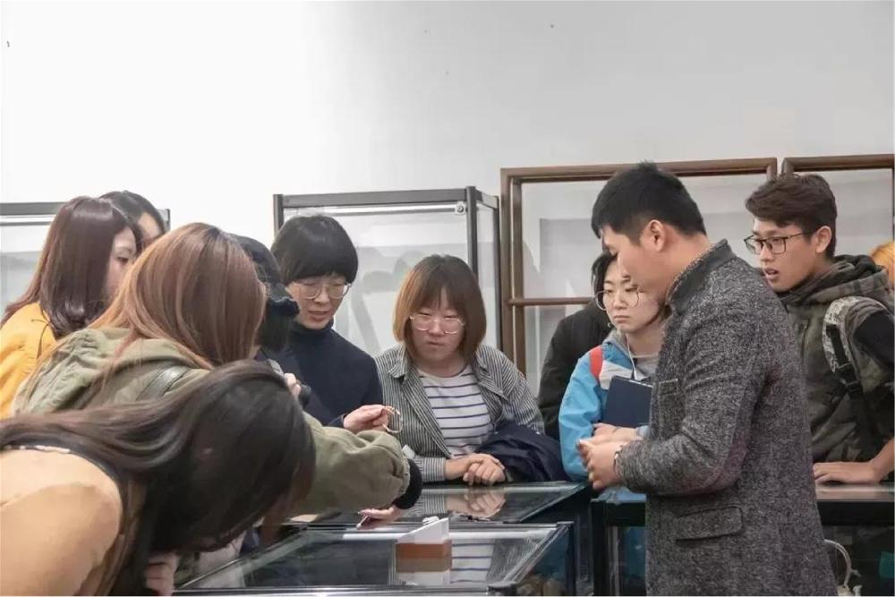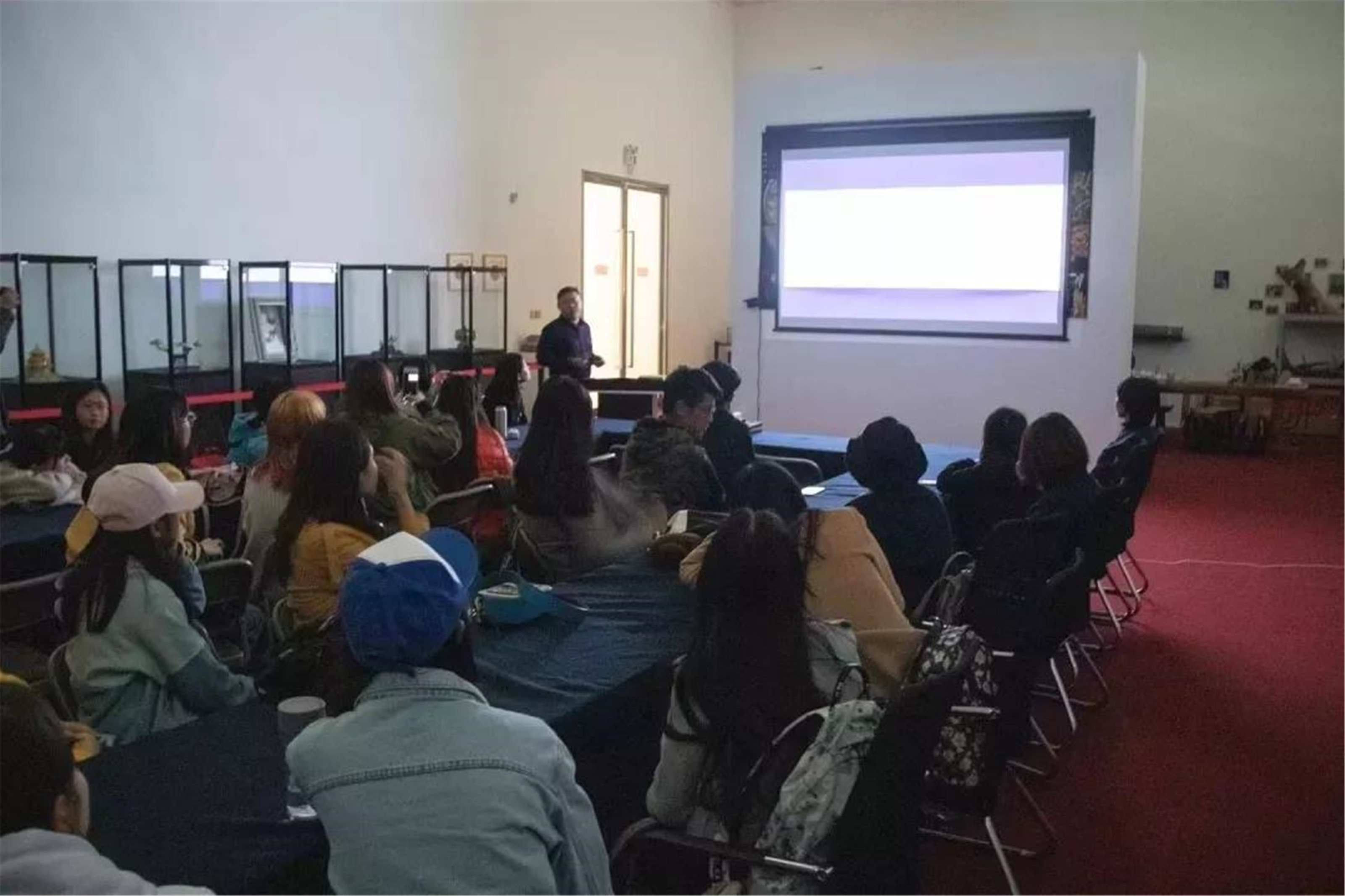参观过后,左兴岩老师在展厅给同学们带来了详细又不失风趣的花丝镶嵌主题讲座,他讲解了花丝镶嵌的起源,发展历程以及相关的现代化商业模式。学员们认真听讲,并且提出了自己的疑问,经过老师的耐心解答,花丝镶嵌的相关知识逐渐变得清晰明朗。