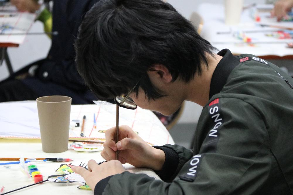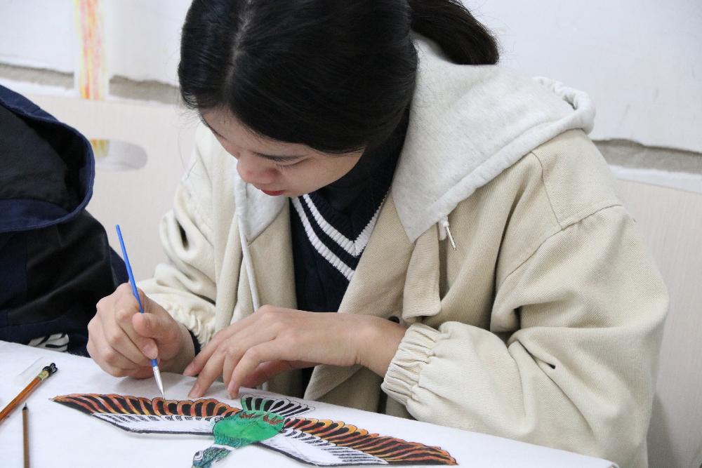 随后,同学们亲手为吴老师带来的适合于室内的无风也能放飞的风筝上色。吴老师对同学们制作的风筝作出点评的同时,亲手教给同学如何系活扣。教室中不停有新做出的风筝在上空盘旋起舞,凭依片纸亦可翔飞于天。