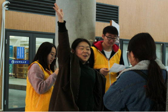 各小组在完成所有的游戏环节后都领到了指向操场的最后一个线索,用时最短者获胜。下午三时许,已有队伍完成全部关卡返回起点。前三队在登记完成后获得与院旗合影留念的机会,场内的工作人员记录下了每支队伍闯关成功后的开心笑颜。
