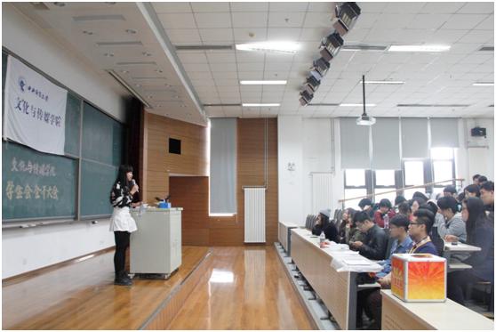 本次全干大会主要分为两个环节。首先是由主席团各主席带领其分管的员工会部门介绍部门自身情况。秦策主席率先发言,他提议要让员工会走向制度化、规范化,并且真诚地感谢员工会,它让我们从彼此陌生走到相知相识。紧接着,办公室进行自我介绍。他们以情景小品的形式生动地再现了办公室日常工作和主要职能。研究室则简洁有力地说明了自身部门的严肃特性以及上学期的研究成果。一向严肃认真的组织部,在本次大会中却一改往日印象,除了亮出富有历史意义的组织部家谱外,还为到场观众表演了一支古色古香的优美舞蹈。