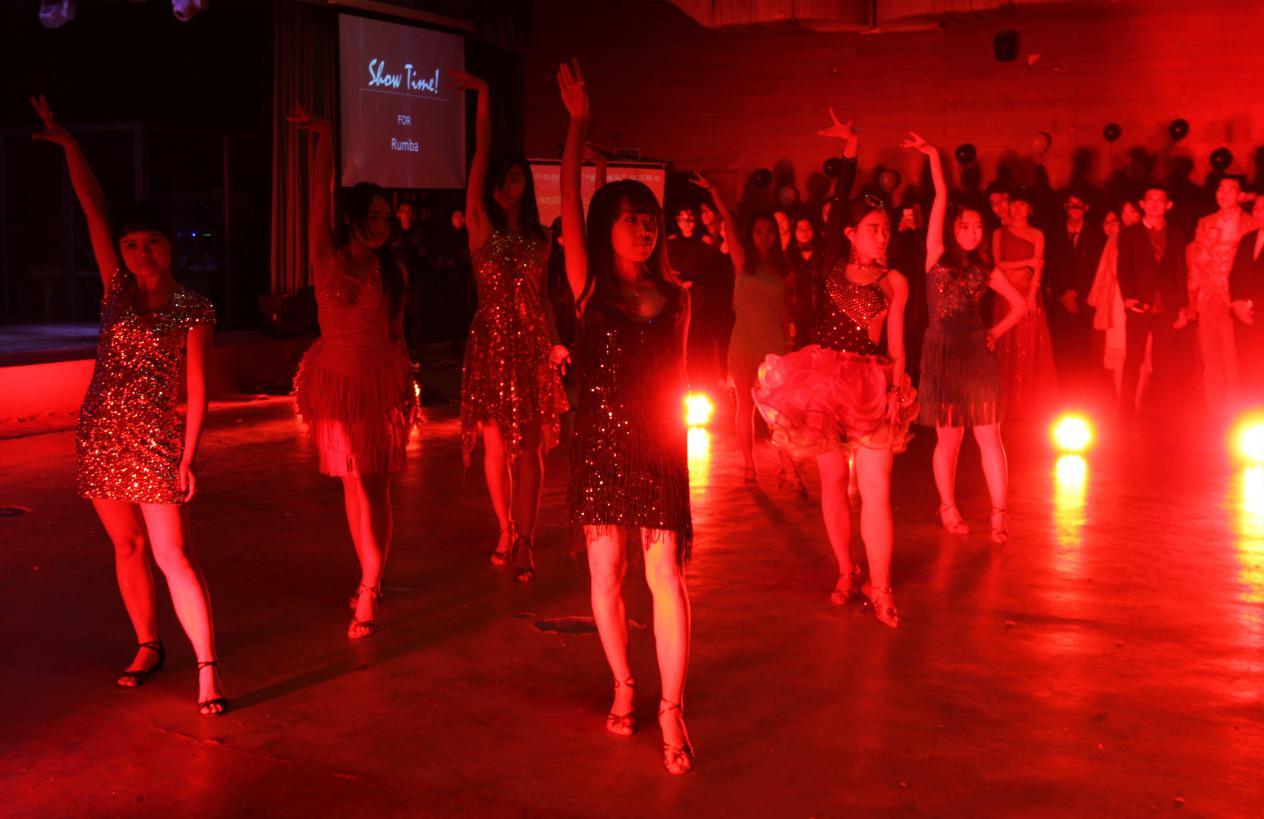 伴随着一支轻快动感的开场舞,“翩跹舞乐”假面舞会在晚上19时正式开始。舞乐组委会精心打造无主持舞会,以唯美舞台剧的独特方式,融合华尔兹的历史,串联本次华丽盛大的舞会。梦幻之旅的首站,来到华尔兹的发源地——17世纪德国巴伐利亚的麦田。踏着欢快的节拍,舞乐学员们带来滑稽风趣的“农民舞”,并邀请到场观众一同参与其中。随后,舞台剧穿越到英国贵族的皇家舞会,舞乐学员身着古典宫廷华服在舞池中央跳起美妙的华尔兹舞。舞乐特邀嘉宾515舞社副社长李其泽示范简单的华尔兹舞步,传授步法。同学们在习得华尔兹简单舞步后,携手舞伴,面带笑容,自由地舞动。