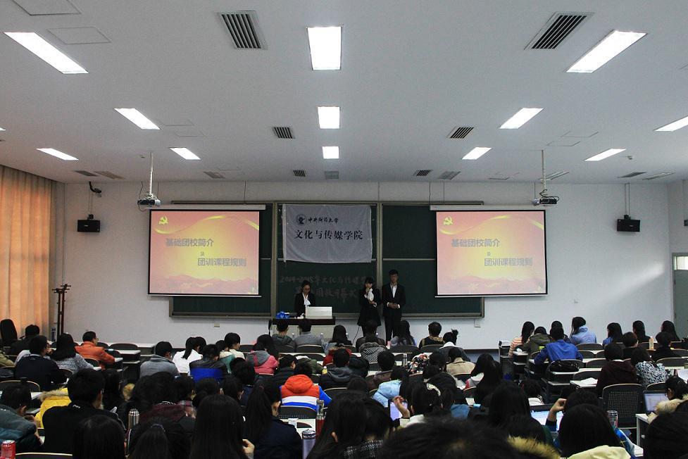 本次基础团校开幕式共分为基础团校简介、新生代表发言、主题教育讲座三个模块。首先,面对广大新生对基础团校的疑窦,主持人详细介绍了基础团校培训活动的具体情况,课程涵盖了摄影培训、法律素养、时事分析等板块,并告诉新生团员团训规则及考察方式。而后,来自新闻14班的张涵同学作为新生团员代表上台发言。她阐明开展基础团校培训既是个人能力培养的重要手段,又是发扬红色文化的重要途径,并表明,每一个新生团员应充分理解支持基础团校活动,并积极参与其中,争当优秀团员。完员工代表慷慨激昂的陈词后,谢玉进老师别开生面的一堂社会主义核心价值观主题讲座开始进行。谢玉进老师援引众多道理名言以及美国兰德公司的事例,播放纪录片《较量无声》,让同学们深切领悟到学习社会主义核心价值观的迫切性及必要性。之后,谢老师深入浅出地为同学们阐述价值观的基本定位,让同学们形成对价值观的基本认识。谢老师还联系当代社会热点实情,从“文化巨人”“审丑文化”“传统价值式微”等角度凸显当代中国价值观所呈现的问题所在,令全场同学陷入深思。他指出要在转型中的中国呼唤精神觉醒,并将同学们带入对社会主义核心价值体系和社会主义核心价值观的深刻剖析中。最后,谢老师以分享小故事的形式结束讲座,并给予在场同学殷切的期待:“每个人将社会主义核心价值观成为自己的基本遵循,并身体力行,大力将其推广到全社会中去。”谢玉进老师的讲座声情并茂,通俗易懂,博得了在场新生团员的热烈掌声,回响不断。