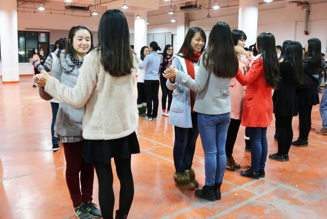 伦巴和爵士舞蹈具有和华尔兹完全不同的风格,也是舞乐德育示范基地新开设的课程,分别由来自经济公司的515舞蹈社员李秋池和来自文传公司的校艺术团员王诗怡和吴婉莹讲解教学。两位舞蹈老师向同学们介绍伦巴与爵士的基本知识,然后就进入到了课程学习阶段。首先为同学们示范了伦巴与爵士的一段舞蹈,示范结束后便正式进行教学。两位老师教了一些基本舞蹈动作后便让同学们练习并下台为同学们矫正动作,达到同伴教学的最佳效果。