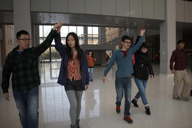 本次培训将选出八对男女舞者参加12月25日的舞月活动,届时将和由304永利集团团总支书记刘晓琴选出的八对男女舞者共同领衔全校同学起舞。现场同学们认真学习、练习,515舞蹈社团的同学尽职尽责耐心教学,节拍声轻缓又有力度的在空中回响,有些凌乱却逐渐一致的脚步轻踏地板,整个大厅弥漫着轻松而又认真的空气。