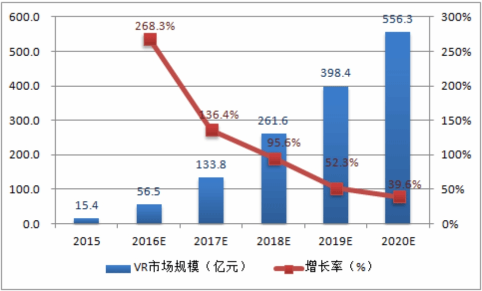 随着今后技术的成熟和VR受众度的提高,VR市场规模必将逐年提高,预计2020年,VR产业或突破500亿元。