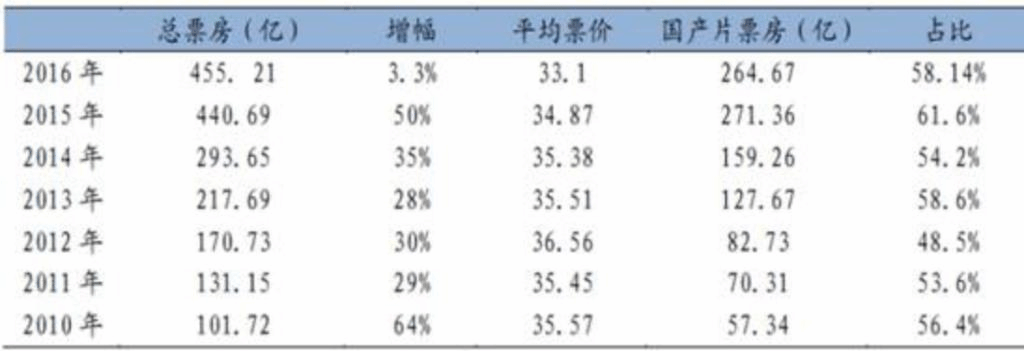 2010-2016年度国内电影市场表现