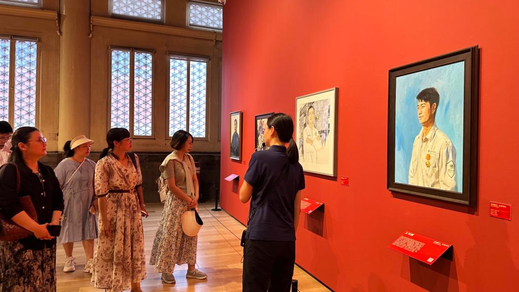随后,教师们来到 “劳动颂” 主题展区域。该展览由北京市总工会等单位主办,含太庙寝殿的 “致敬匠心 礼赞劳动 —— 劳模主题写生创作展”、享殿西配殿的 “繁花绘韵 岁月华章 —— 主题创作展” 及东配殿的 “匠心独运 京艺华彩 —— 北京工匠工艺美术作品展”。展品包括以近百位历年及 2025 年新评全国、市级劳模和先进工作者为对象的水墨、油画、雕塑作品,数十幅古建园林和劳动题材书画精品,以及刘更生等 5 位工匠的技艺力作,这些作品共同构成了一场艺术创作与时代精神交融的艺术盛宴,让教师们深刻感受到劳模精神、劳动精神、工匠精神在一代代传承中的淬炼升华。
