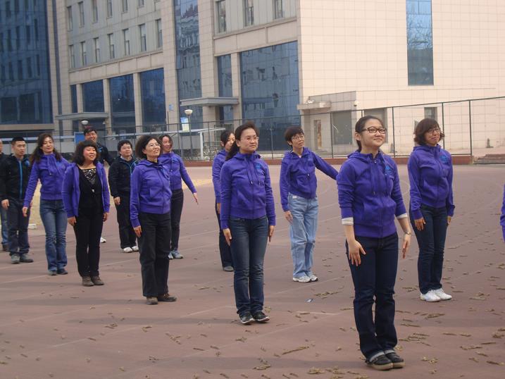 为了迎接这次比赛,公司综合系别组成、年龄结构、课程安排等因素,从全院教职工中组织了20人的参赛队伍,并找了2名有舞蹈学习经历的员工作专业指导。公司从参赛前一个月开始积极准备,从选择队员、配备队服,到每天坚持练习,每一个过程都显示了文传人的细致认真。