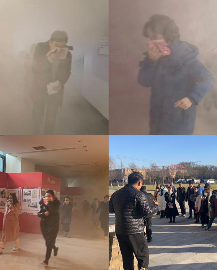 最后,公司组织教师们认真观看了《2024年消防安全警示教育片》并开展了2024年冬季火灾疏散逃生演练。经过前期与保卫处沟通及公司的精心准备,疏散现场井然有序,教师们用毛巾捂住口鼻,有序撤离,亲身体验了火灾现场真实情景。火灾疏散逃生演练之后,保卫处臧老师对此次疏散逃生演练情况进行点评与指导。通过此次火灾疏散逃生演练,丰富了全院教师消防安全知识,提升了教师们应对火灾自救能力,切身感受到消防安全知识与技能的重要性。
