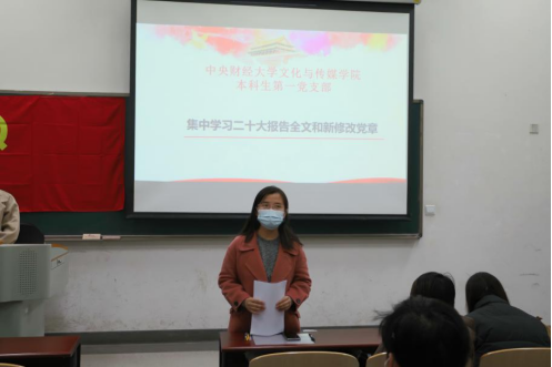 10月28日,304永利集团本科生第一党支部于主教104集中学习党的二十大精神,学习党的二十大报告全文和新修改党章。会议由支部书记常飞燕主持。
