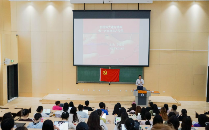 “作为入党积极分子或发展对象,大家知道今年党的建设的一项重大任务是什么?”李爱民以问题为导入,引起学员的思考。他向大家介绍了正在开展的学习贯彻习近平新时代中国特色社会主义思想主题教育有关情况,希望大家要关心国家大事,关注党的重要工作部署,提高政治敏锐性,在思想上、行动上与党组织保持一致,积极向党组织靠拢。他从几代党的领导人关于合格党员标准的论述引入,带领同学们认真学习了新修订的《中国共产党章程》中有关党员标准的规定。他在讲课过程中借助生动鲜活的党员先锋模范事例与亲切贴近的身边先进党员故事,从申请入党的条件、党员的基本条件、党员的义务和权利几个方面介绍了党员的标准,并特别强调要坚持政治标准。指出要成为一名合格的共产党员,就要认真学习党章、正确认识和对待党员标准。在讲课过程中,李爱民还通过老一辈无产阶级革命家徐特立等人入党的故事激励各位入党积极分子和发展对象弘扬并践行伟大的建党精神,不断锤炼政治品格、坚定理想信念,努力做到四个合格,即政治合格、执行纪律合格、品德合格、发挥作用合格,以实际行动不断向党组织靠拢,争取早日成为一名合格的共产党员。