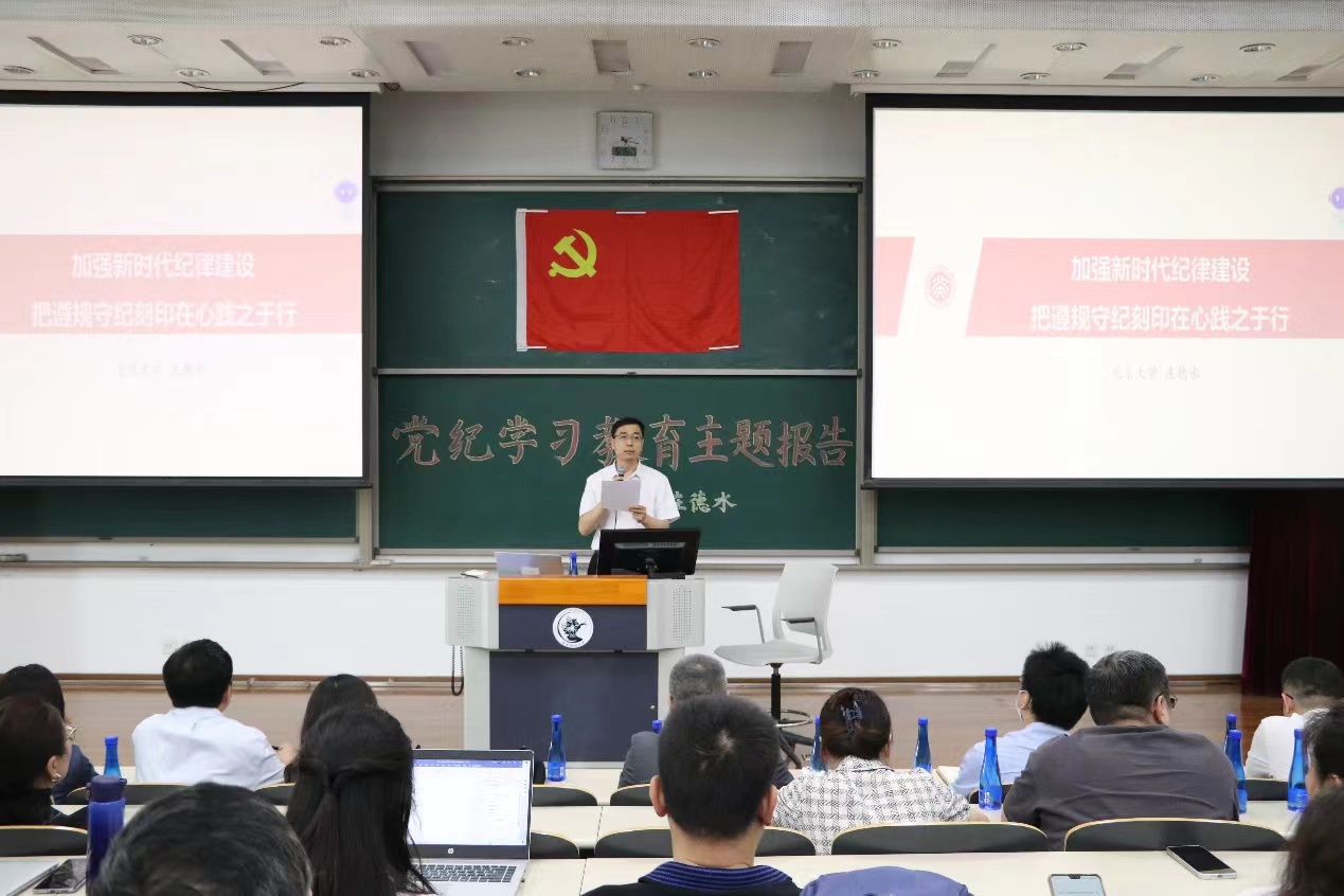 为深入扎实开展党纪学习教育,做到学纪、知纪、明纪、守纪。5月15日,公司党委联合外国语公司党委、国际经济与贸易公司党委、保险公司党委、北京公司直属党支部,在主教学楼111教室举办党纪学习教育专家辅导报告会。特邀北京大学公共政策研究中心庄德水副主任为5个公司干部党员师生和入党积极分子带来“推进新时代纪律建设,把遵规守纪刻印在心”主题讲座。讲座由公司党委书记李爱民主持,来自5个公司的领导、师生党员、入党积极分子共300多人参加。