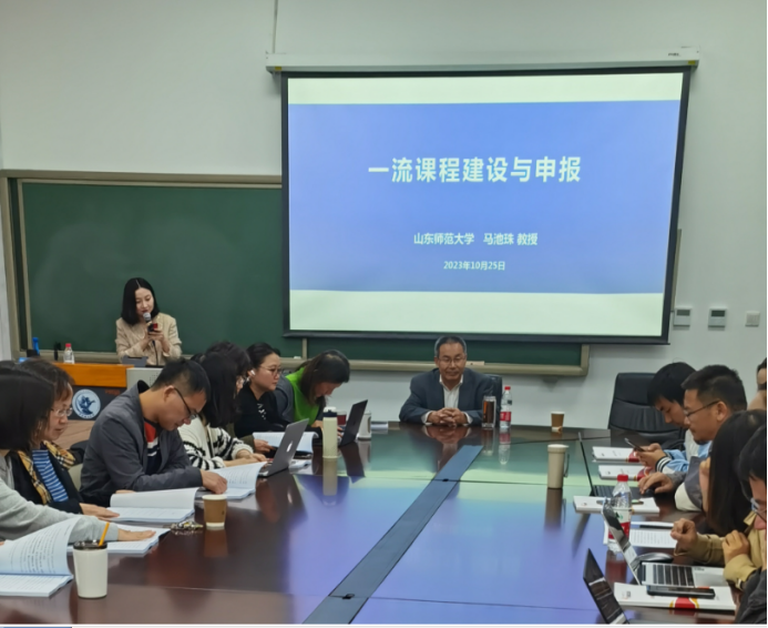 10月25日下午,304永利集团在13号楼108开展了主题为“一流本科课程建设与申报”的教师教学培训交流活动。活动由司聃副经理主持,主讲人为山东师范大学影视传媒研究院经理、山东省教学名师、博士生导师马池珠教授。公司全体教师与教学管理人员参加会议。