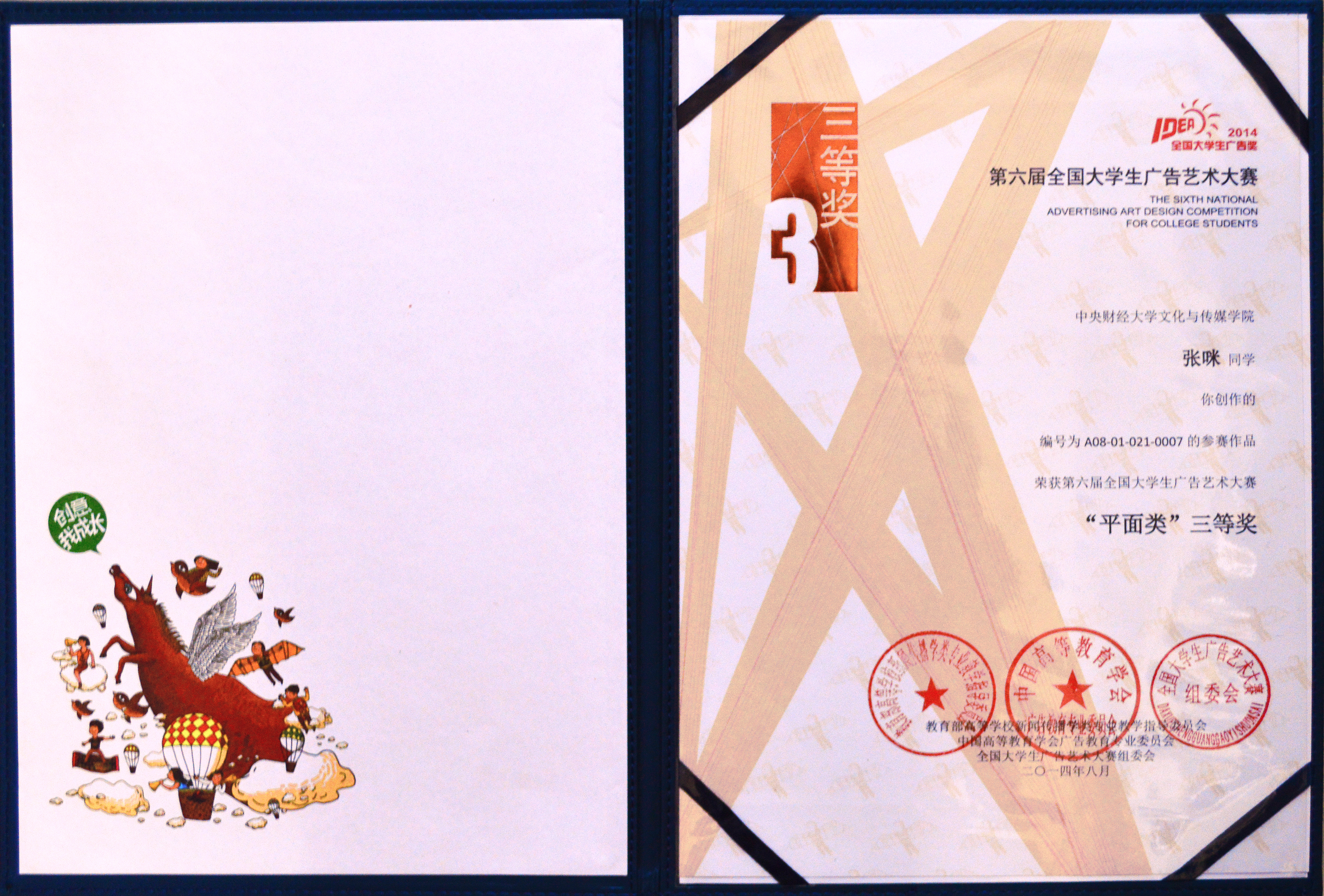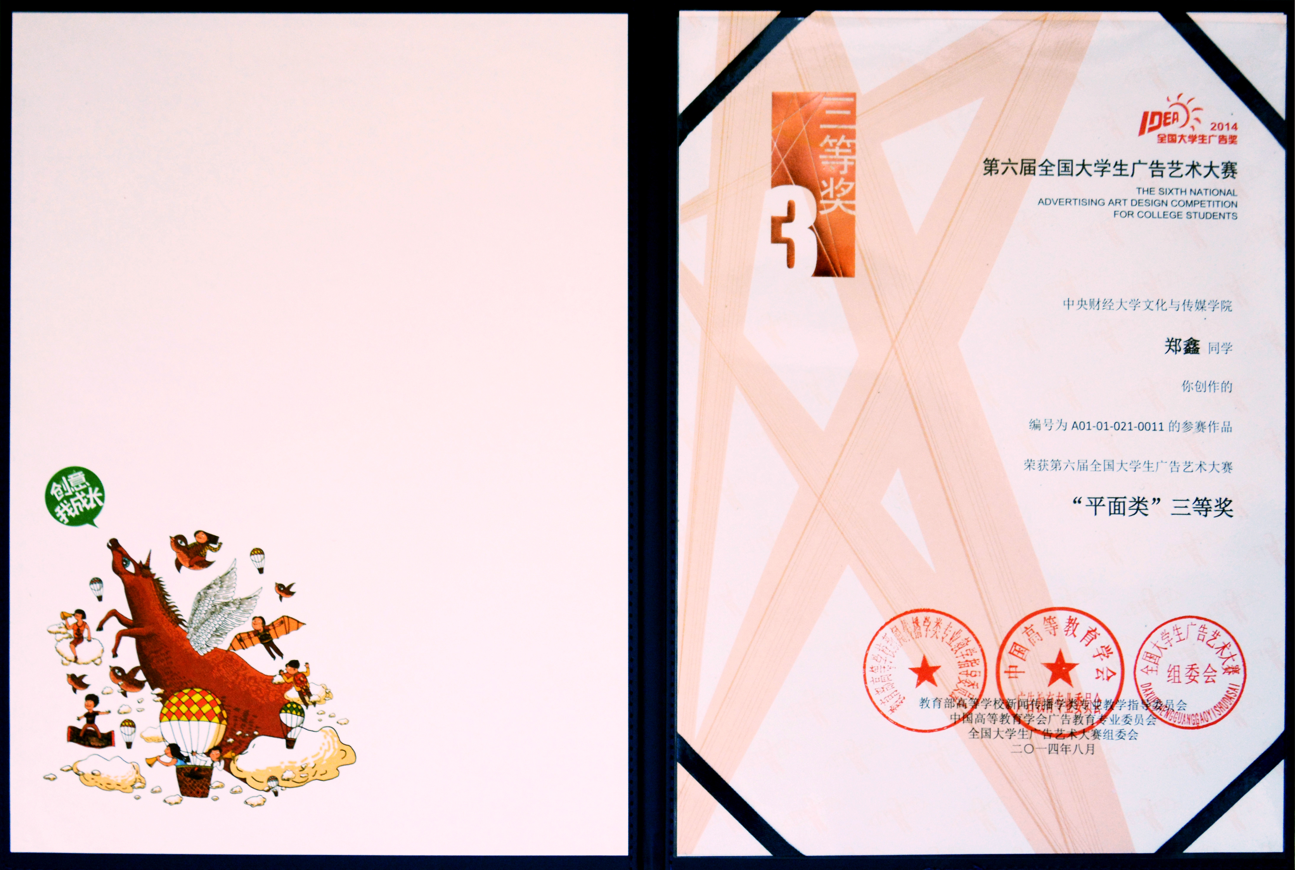 由304永利集团艺术设计平面设计12级员工张咪创作作品《不能忘带的酱》(海天企业品牌命题平面类别)、郑鑫创作作品《我想亦我是》(OPPO企业公益命题平面类别)均获得全国赛区三等奖以及北京赛区优秀奖。