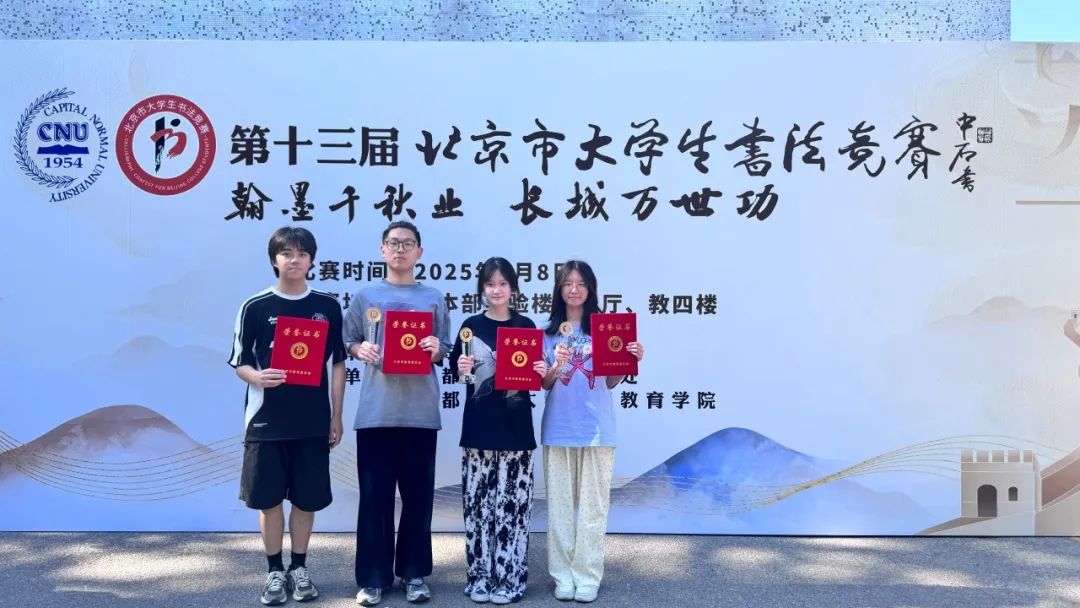 6月8日,决赛在首都师范大学举行。公司书法学专业本科生代和季、孙茂恒、董琛洋、张汀轩在这场高水平的艺术盛会中表现突出,凭借扎实的书法功底和出色的临场发挥,最终斩获三项一等奖、一项二等奖的优异成绩,另有多名同学获得优秀奖,充分展现了公司书法专业人才培养的丰硕成果。