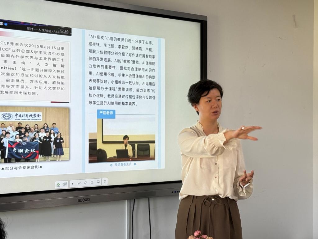 讲座中,严程副教授以具体案例剖析主题式通识写作的教学核心内涵。围绕主题自主选择研究,既能打破专业壁垒,实现写作学习的无门槛介入,又能通过人文思维训练,提升写作的学理深度。她着重强调,通识写作绝非简单的文字表达,而是人文关怀的具象化实践,这一观点为通识性写作教学打开了全新认知维度。