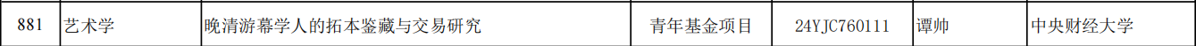 2024年度教育部人文社会科学研究项目评审工作全部结束,经专家严格评审和面向社会公示,公司谭帅老师的《晚清游幕学人的拓本鉴藏与交易研究》课题获得资助立项。